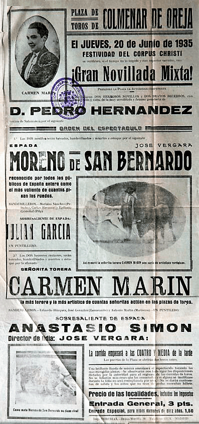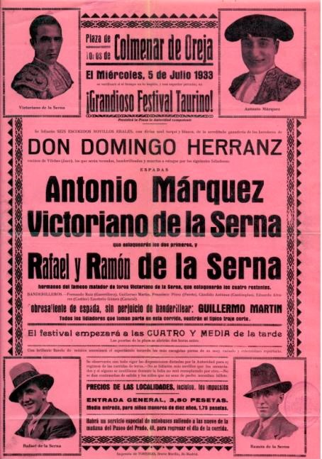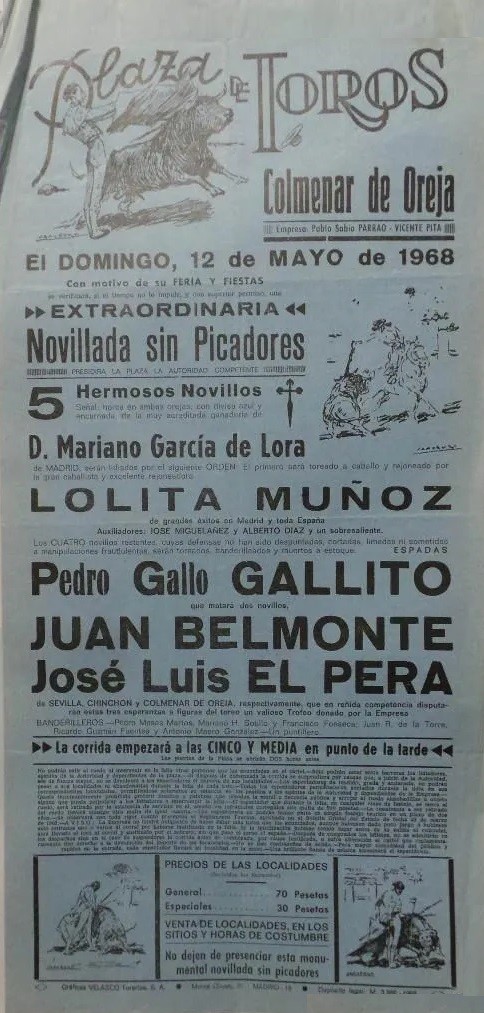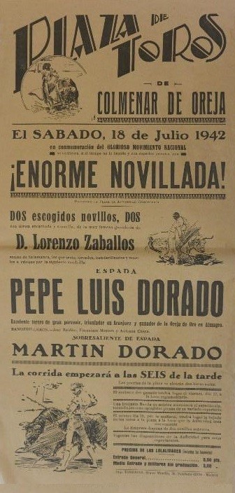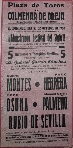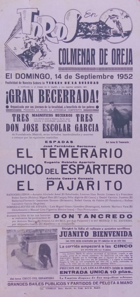 El cartel de la derecha, corresponde al Festival Taurino celebrado en la Plaza de Toros Colmenar de Oreja el jueves 7 de octubre de 1954.