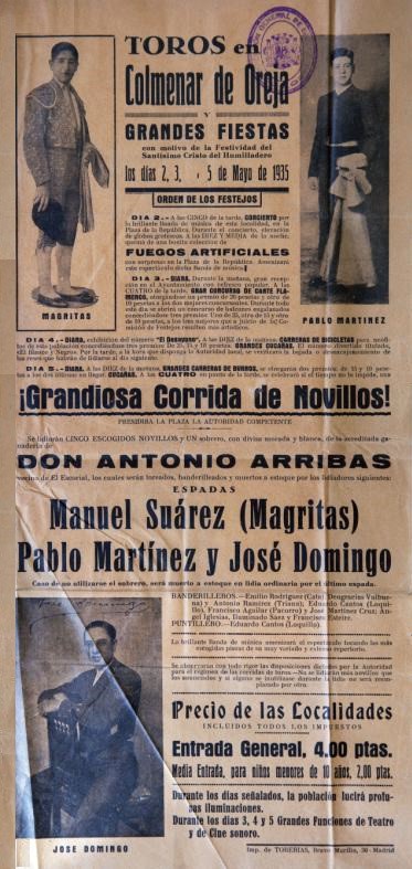 Galeria fotografica correspondiente a la Becerrada celebrada en Colmenar de Oreja el 4 de mayo de 1943, con los becerristas Cayetano Ordóñez Araujo "Niño de la Palma" y Pepin Martin Vazquez.